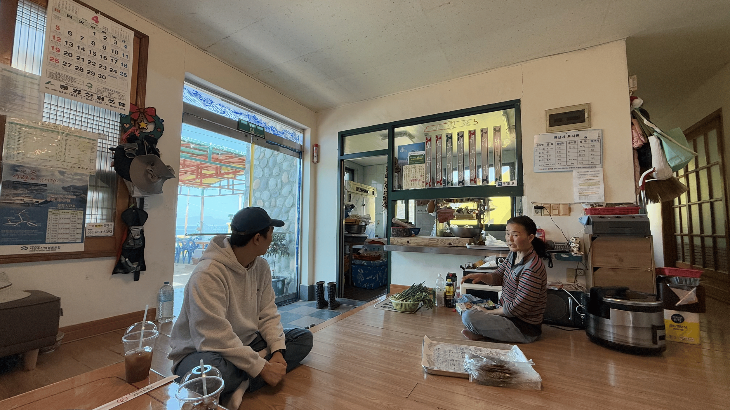 We told her we had already eaten. She ignored that friendly. Instead, she kept placing food in front of us—homemade Korean pancake, pickled vegetables, kimchi—urging us to try this, then that, then one more thing. The food was wonderful, but what moved me more was the feeling behind it. She wasn’t feeding customers. She was taking care of people. And it wasn’t only her. As we met more locals around the island, we kept hearing the same kind of welcome in different forms.