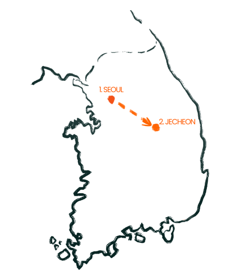 We’ll meet at Seoul Station in the morning and travel together by train to Jecheon, a peaceful lakeside city surrounded by mountains. After arriving, we’ll take a tour of Jecheon and enjoy lunch together. In the afternoon, we’ll check into our accommodation, rest, and gather for a relaxed welcome orientation to get to know each other and the week ahead.