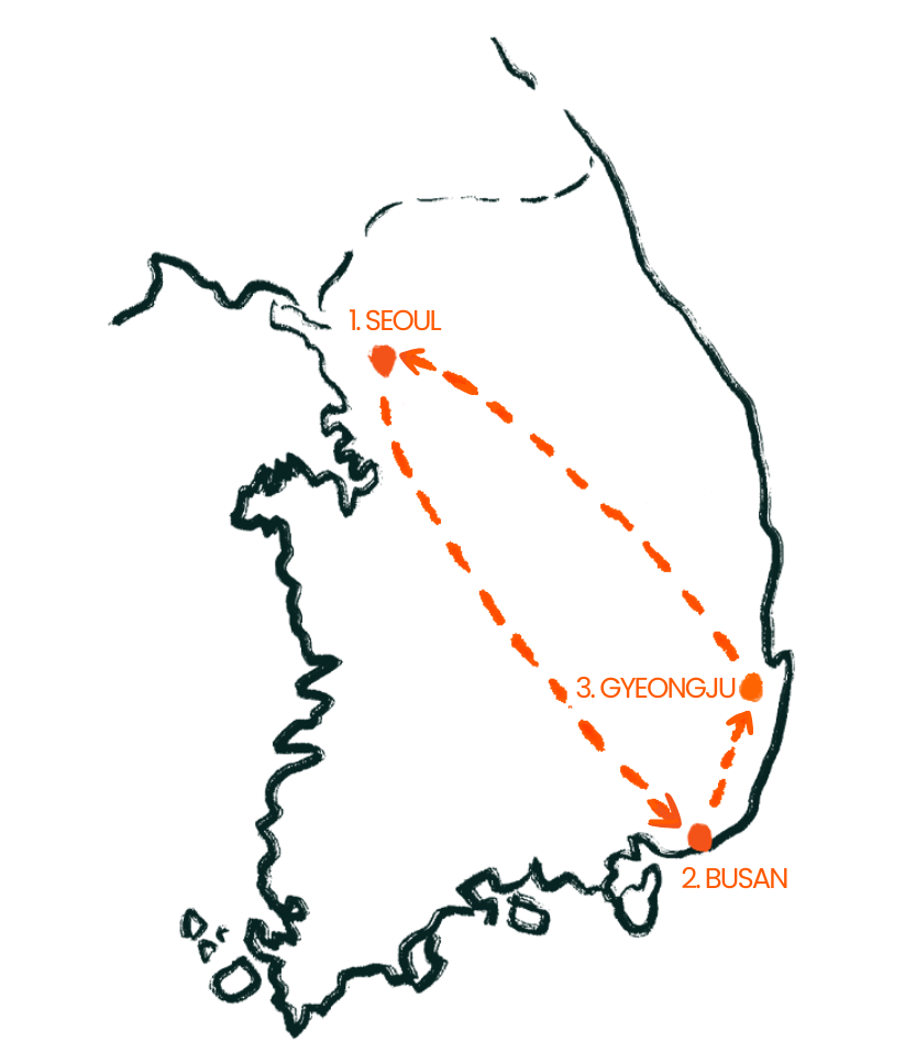 Join me for a 7-day journey through Seoul, Busan, and Gyeongju, where we’ll explore trendy neighborhoods, relax by the sea, dive into history—and make new friends along the way. It’s a fun, easygoing trip filled with good food, great views, meaningful connections, and unforgettable experiences across three of Korea’s best destinations.